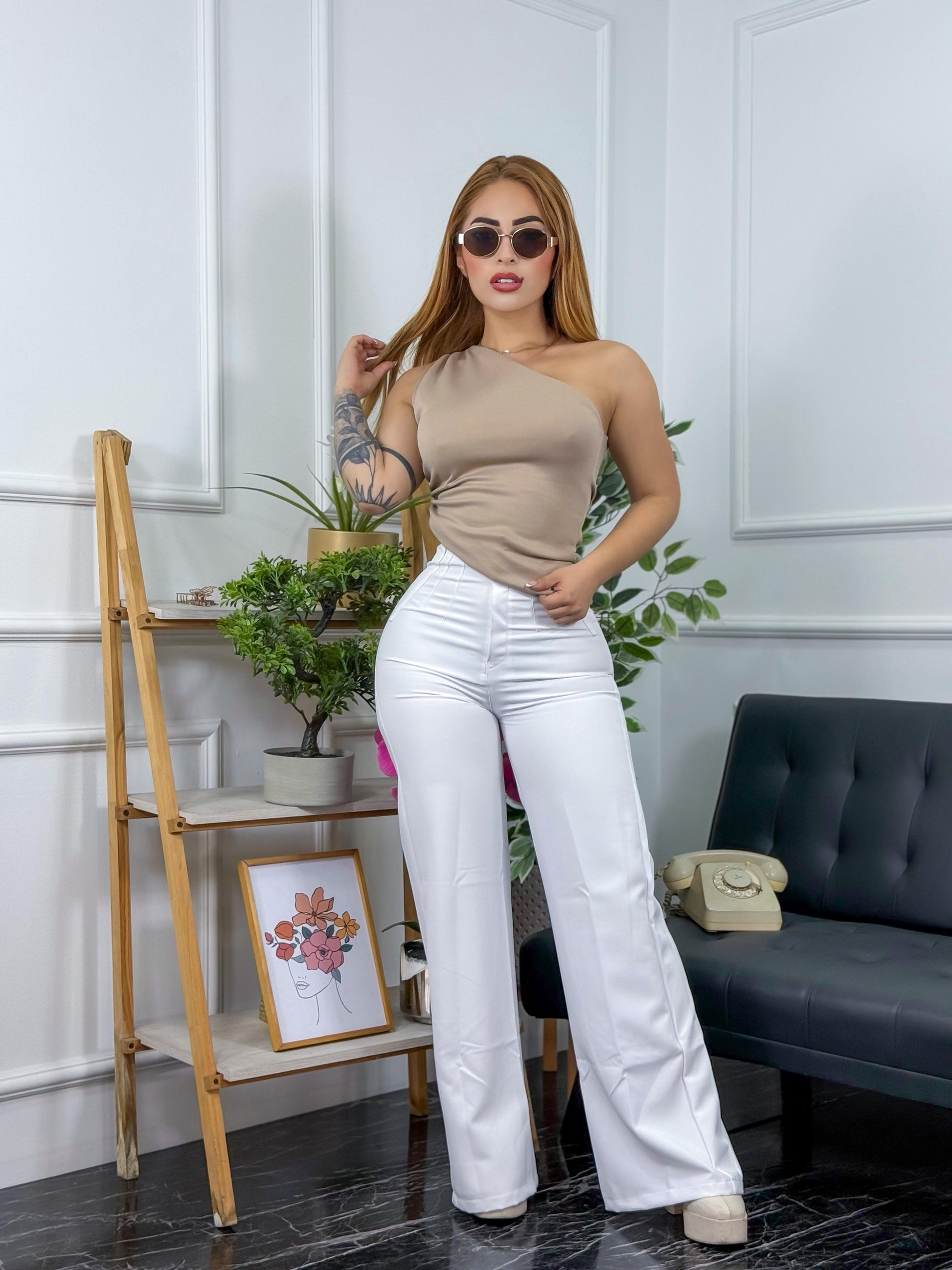 ☑ Blusa asimétrica con detalle en un solo hombro, perfecta para looks formales o casuales