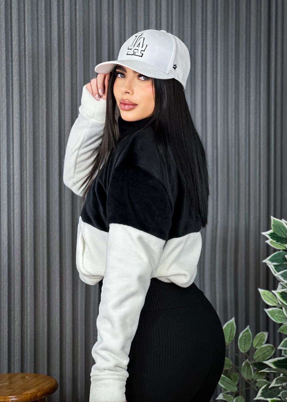 🟣Buzo  peluche  bicolor  para  ese toque  cozy  + street  que amamos 🖤🤍