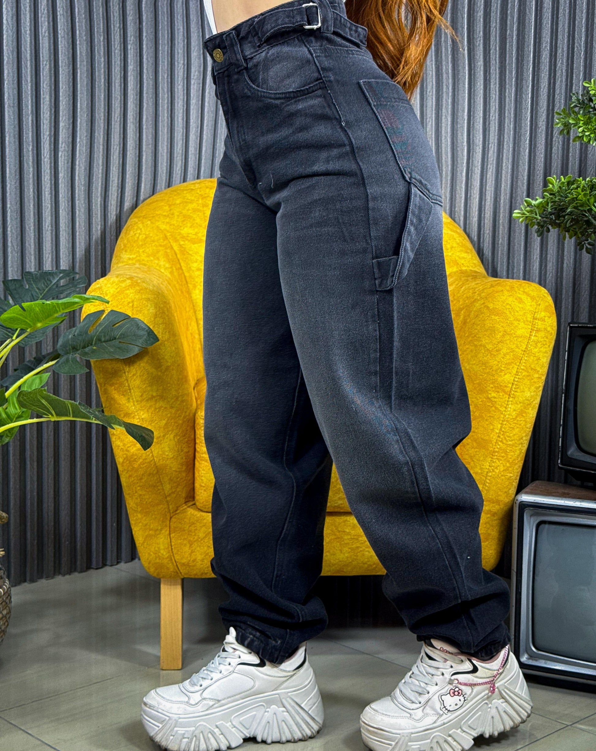 Nuestro Jean Carpinter esta diseñado en tela rígida de alta calidad con hebillas ajustables en la cintura , super tiro alto y estilo amplio tipo Ballón que estiliza y da comodidad en cada movimiento .