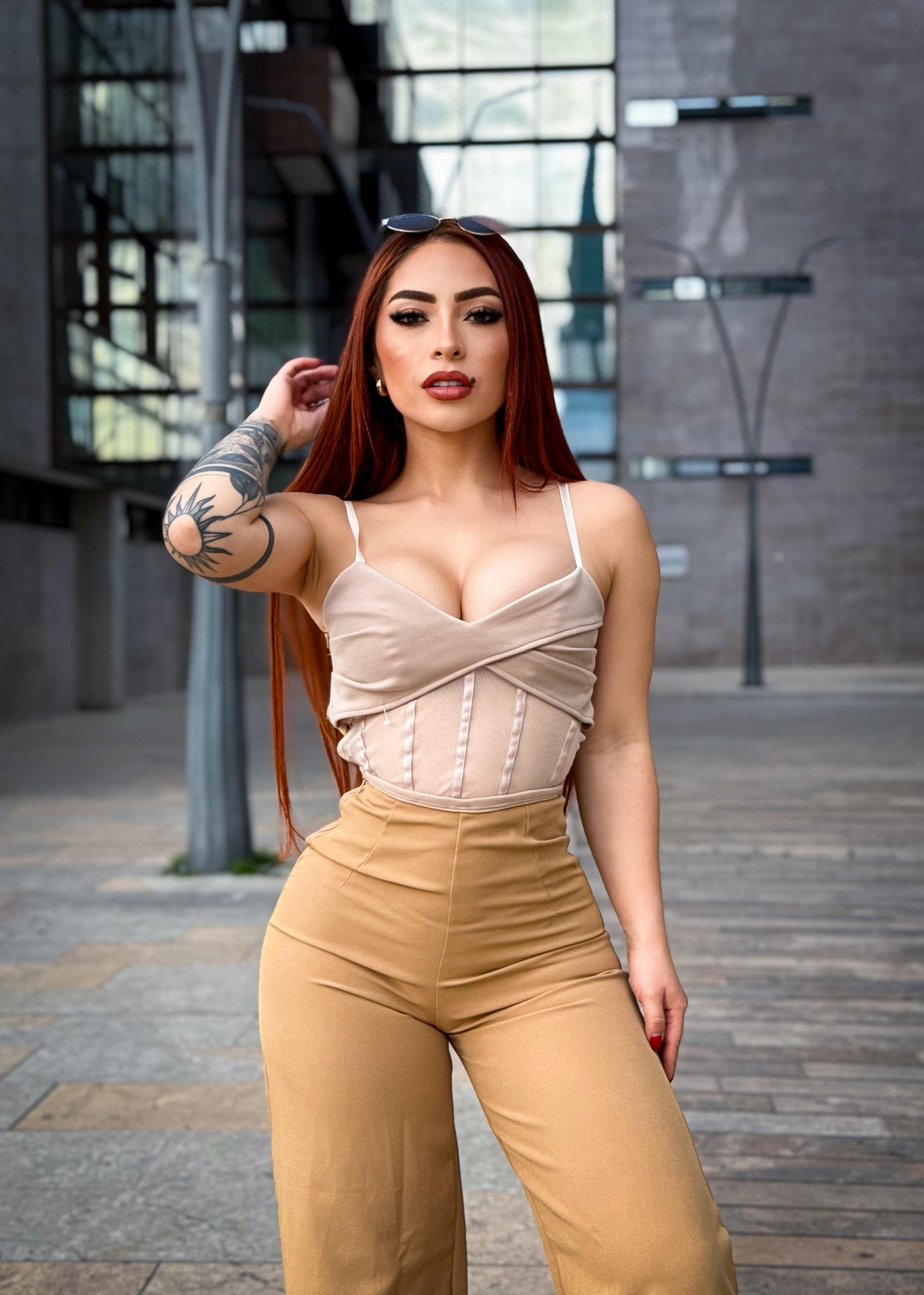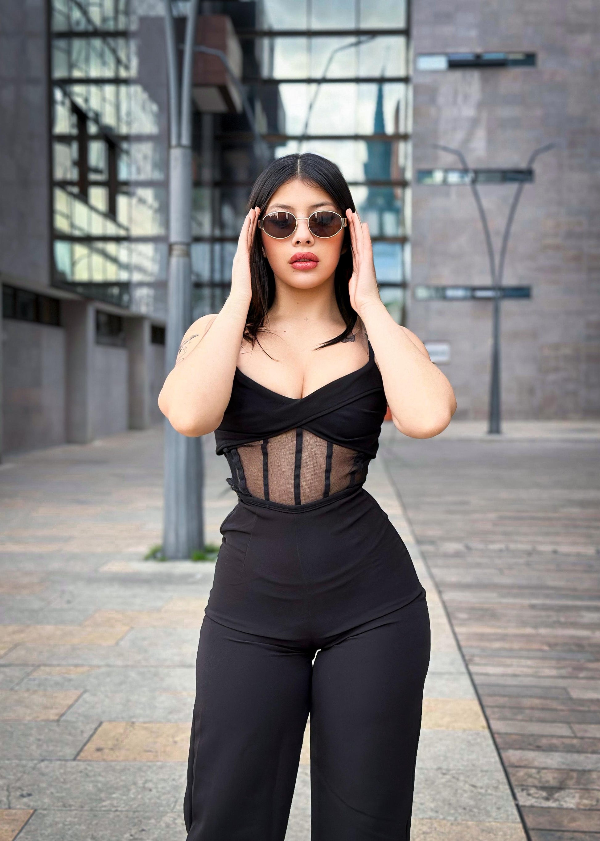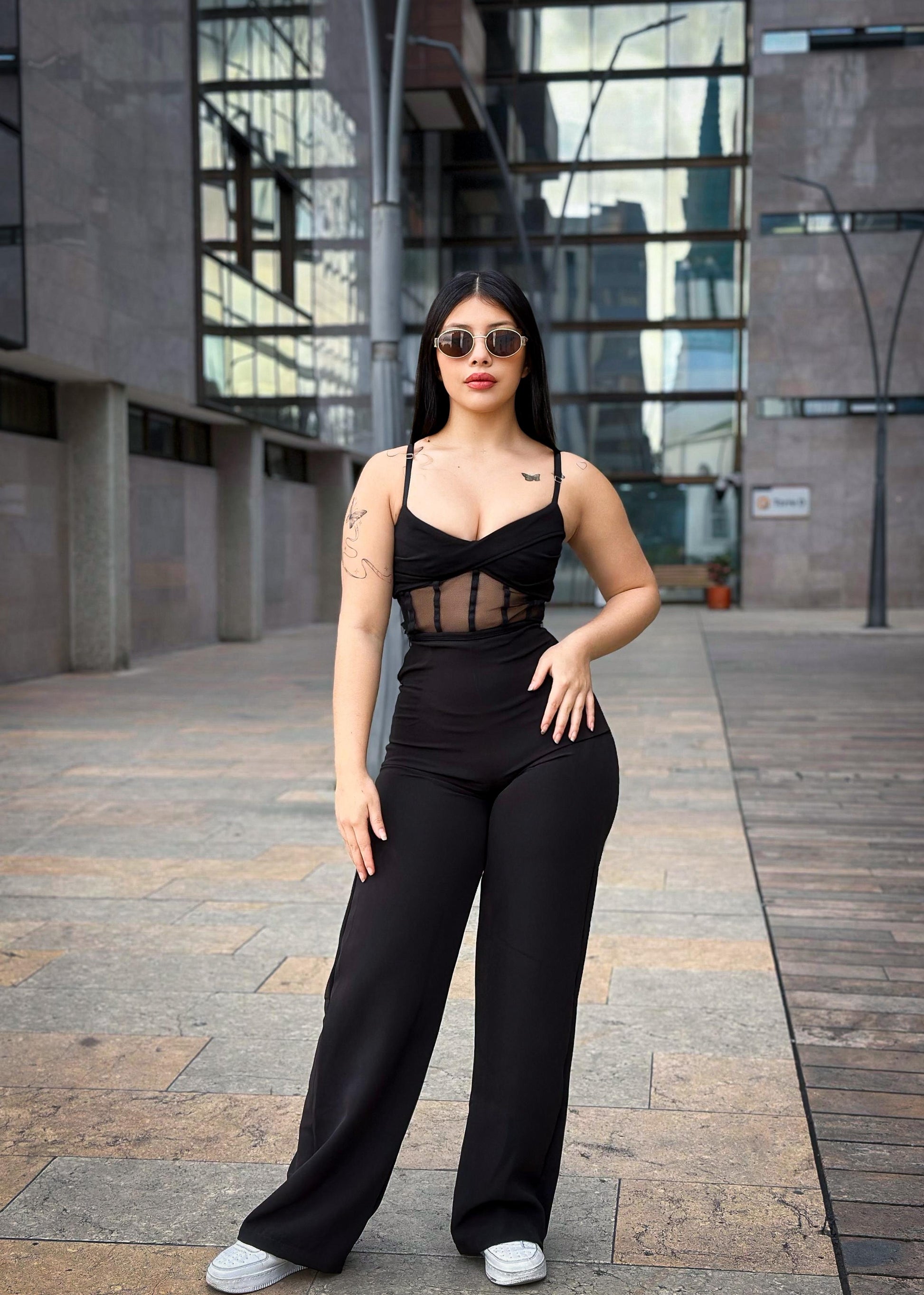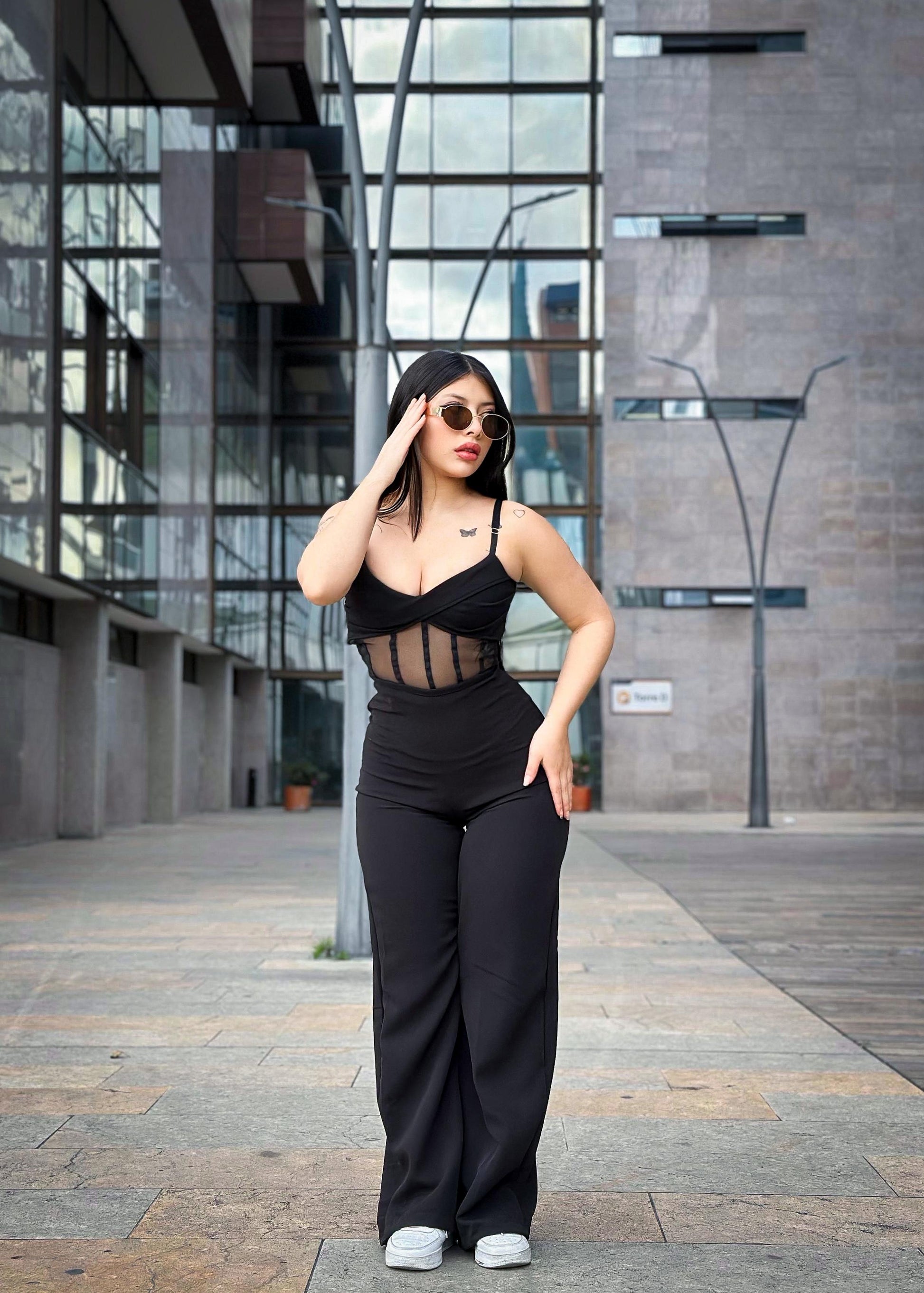 Un look que roba miradas : corset con transparencias elegantes + pantalon bota ancha que estiliza y alarga tu figura 🔥